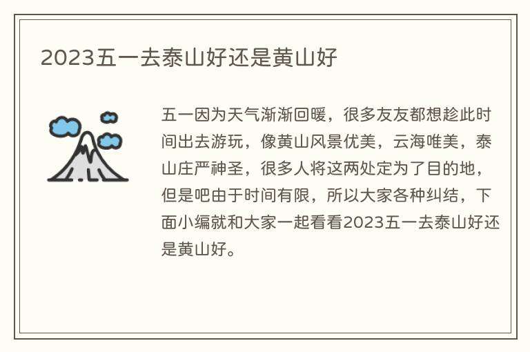 2023五一去泰山好还是黄山好
