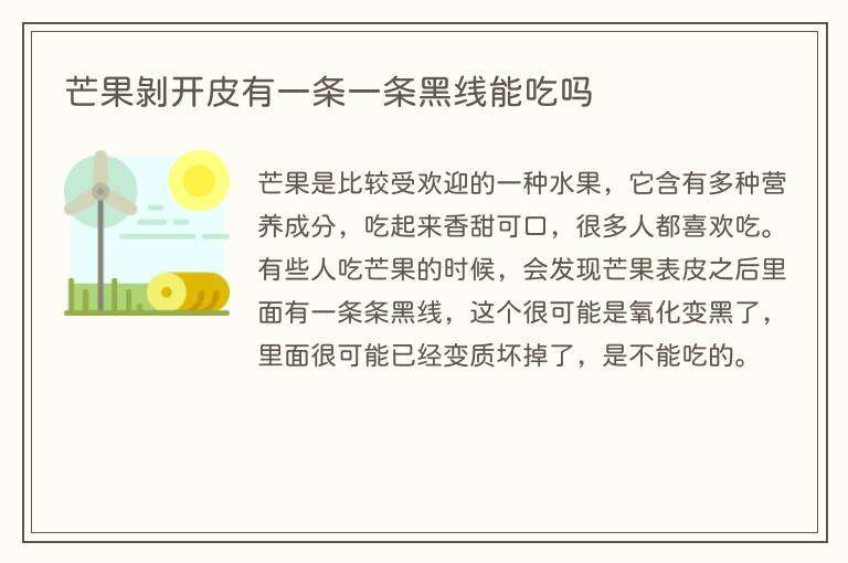 芒果剥开皮有一条一条黑线能吃吗