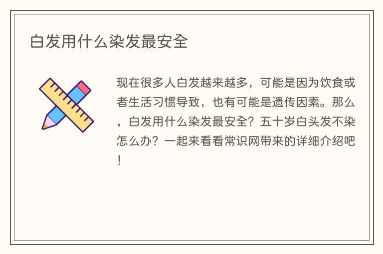 现在很多人白发越来越多,可能是因为饮食或者生活习惯导致,也有可能是遗传因素。那么,白发用什么染发最安全?五十岁白头发不染怎么办?一起来看看常识网带来的详细介绍吧!