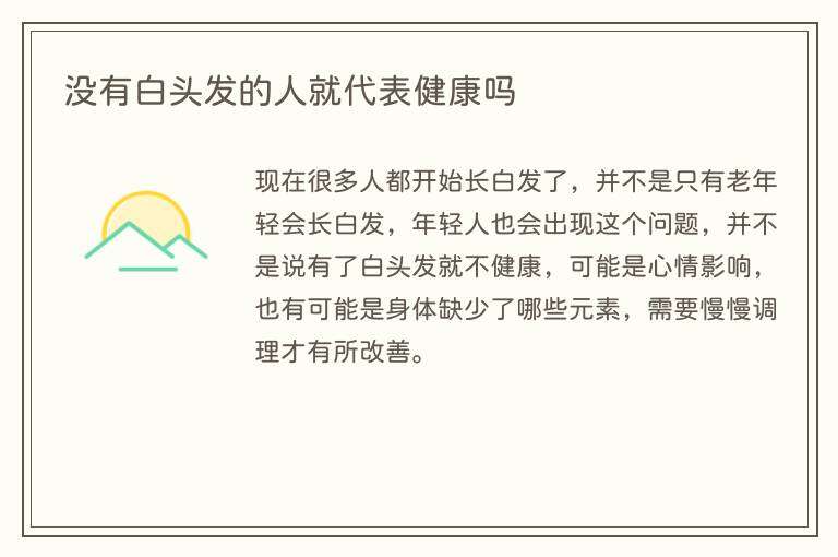 没有白头发的人并不一定寿命更长。虽然白头发和健康状况有一定的关系,但寿命长短取决于多种因素,如遗传、环境、生活方式、饮食习惯等等。因此,不能仅仅通过有无白头发来判断一个人的寿命长短。
