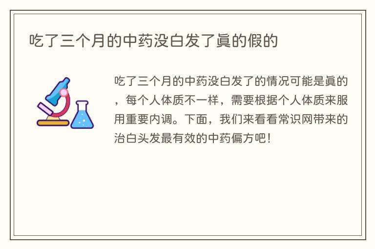 吃了三个月的中药没白发了的情况可能是真的,每个人体质不一样,需要根据个人体质来服用重要内调。下面,我们来看看常识网带来的治白头发最有效的中药偏方吧!