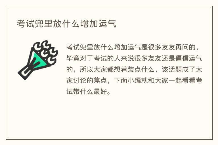考试兜里放什么增加运气是很多友友再问的,毕竟对于考试的人来说很多友友还是偏信运气的,所以大家都想着装点什么,该话题成了大家讨论的焦点,下面小编就和大家一起看看考试带什么最好。
