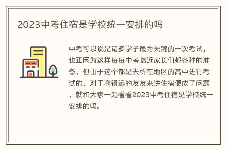 中考可以说是诸多学子最为关键的一次考试,也正因为这样每每中考临近家长们都各种的准备,但由于这个都是去所在地区的高中进行考试的,对于离得远的友友来讲住宿便成了问题,就和大家一起看看2023中考住宿是学校统一安排的吗。