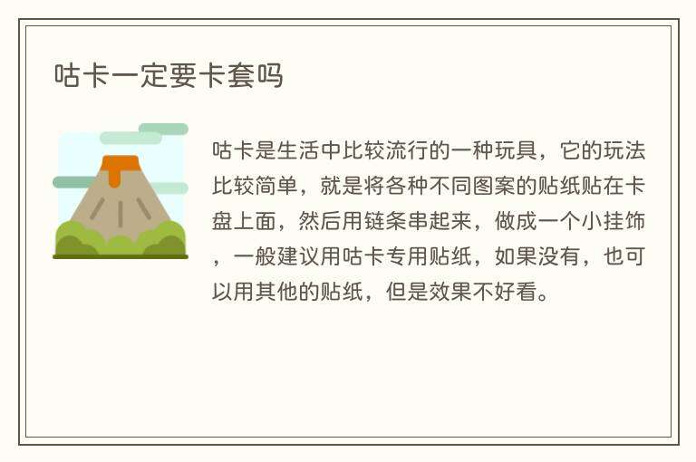 咕卡是生活中比较流行的一种玩具,它的玩法比较简单,就是将各种不同图案的贴纸贴在卡盘上面,然后用链条串起来,做成一个小挂饰,一般建议用咕卡专用贴纸,如果没有,也可以用其他的贴纸,但是效果不好看。