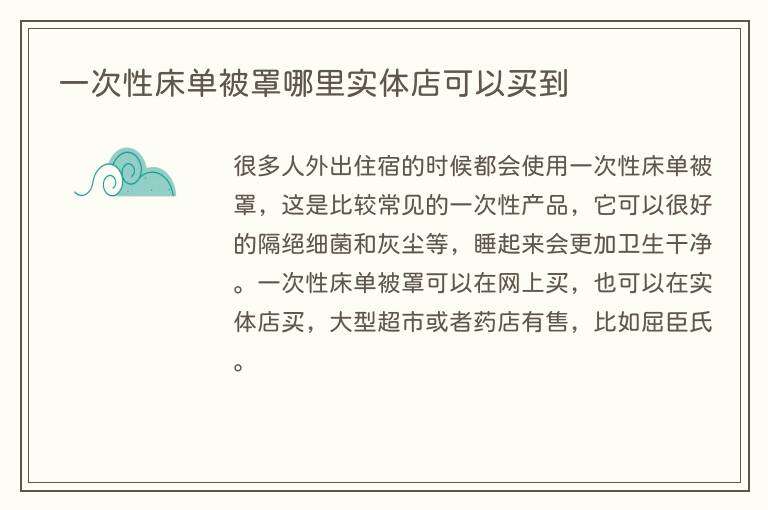 只要是一般的大型超市的话都有卖一次性的床单被罩,小的便利店的话可能没有这样的东西。