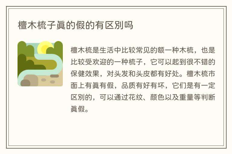 檀木梳是生活中比较常见的额一种木梳,也是比较受欢迎的一种梳子,它可以起到很不错的保健效果,对头发和头皮都有好处。檀木梳市面上有真有假,品质有好有坏,它们是有一定区别的,可以通过花纹、颜色以及重量等判断真假。