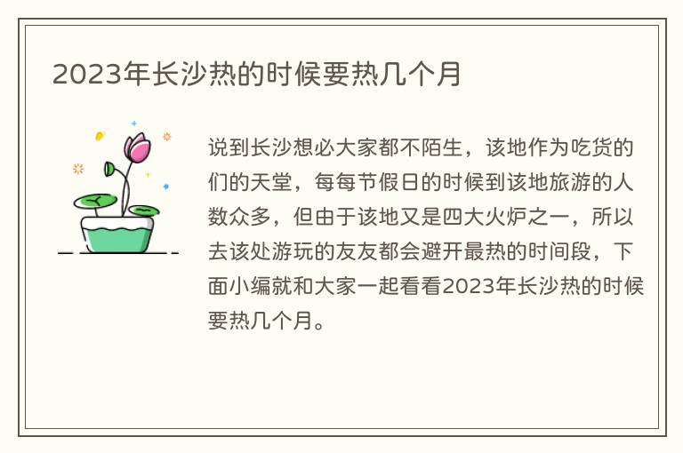 说到长沙想必大家都不陌生,该地作为吃货的们的天堂,每每节假日的时候到该地旅游的人数众多,但由于该地又是四大火炉之一,所以去该处游玩的友友都会避开最热的时间段,下面小编就和大家一起看看2023年长沙热的时候要热几个月。