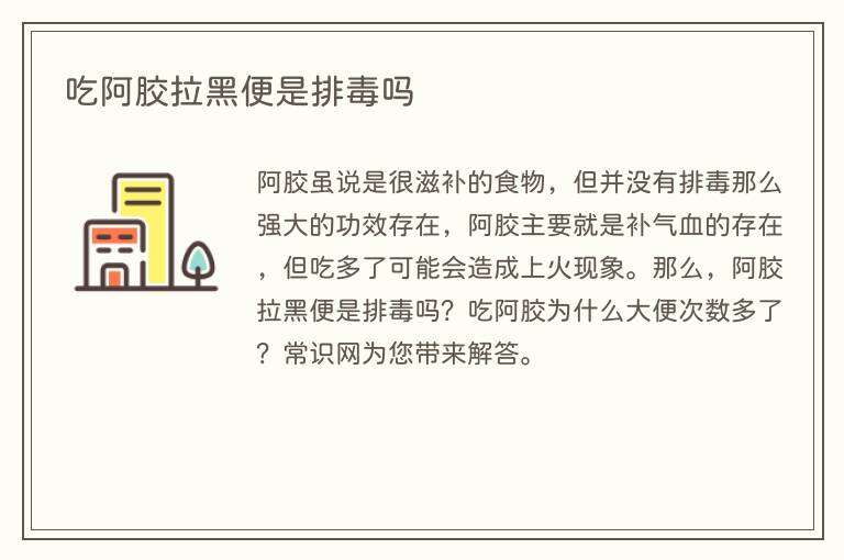 阿胶虽说是很滋补的食物,但并没有排毒那么强大的功效存在,阿胶主要就是补气血的存在,但吃多了可能会造成上火现象。那么,阿胶拉黑便是排毒吗?吃阿胶为什么大便次数多了?常识网为您带来解答。