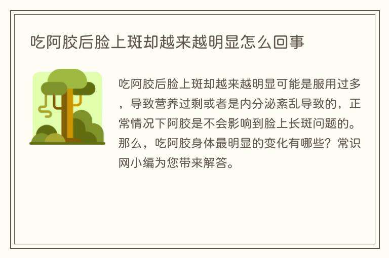 吃阿胶后脸上斑却越来越明显可能是服用过多,导致营养过剩或者是内分泌紊乱导致的,正常情况下阿胶是不会影响到脸上长斑问题的。那么,吃阿胶身体最明显的变化有哪些?常识网小编为您带来解答。