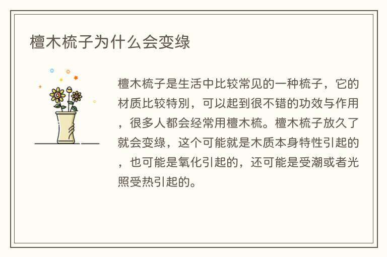 檀木梳变成绿色主要是檀木受潮导致的。檀木一般是黄绿色,如果受到潮湿或者光照受热之后,会显蓝绿色或棕绿色。所以檀木梳平时在保存的时候应该要注意干燥,避免出现受潮的情况。