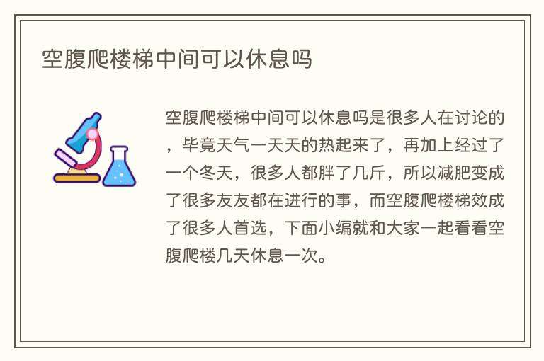 空腹爬楼梯中间可以休息吗是很多人在讨论的,毕竟天气一天天的热起来了,再加上经过了一个冬天,很多人都胖了几斤,所以减肥变成了很多友友都在进行的事,而空腹爬楼梯效成了很多人首选,下面小编就和大家一起看看空腹爬楼几天休息一次。