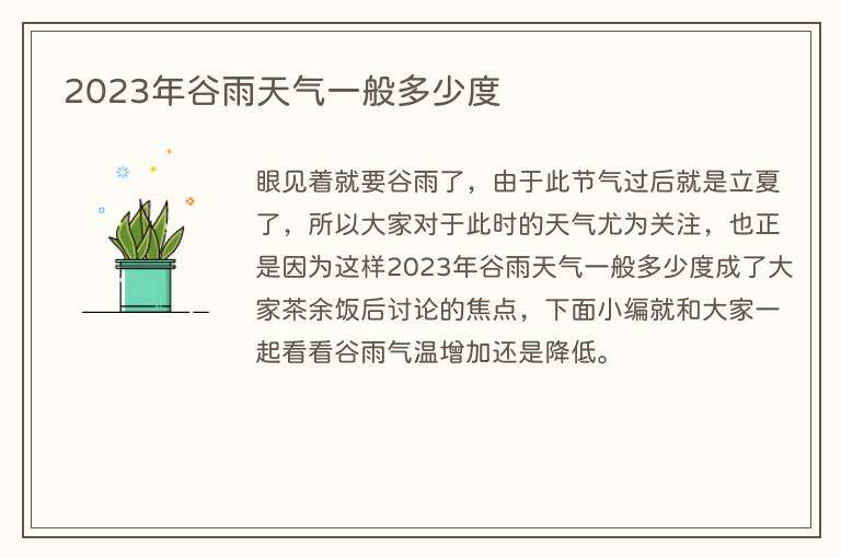 眼见着就要谷雨了,由于此节气过后就是立夏了,所以大家对于此时的天气尤为关注,也正是因为这样2023年谷雨天气一般多少度成了大家茶余饭后讨论的焦点,下面小编就和大家一起看看谷雨气温增加还是降低。