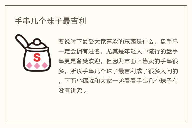 要说时下最受大家喜欢的东西是什么,盘手串一定会拥有姓名,尤其是年轻人中流行的盘手串更是备受欢迎,但因为市面上售卖的手串很多,所以手串几个珠子最吉利成了很多人问的,下面小编就和大家一起看看手串几个珠子有没有讲究 。