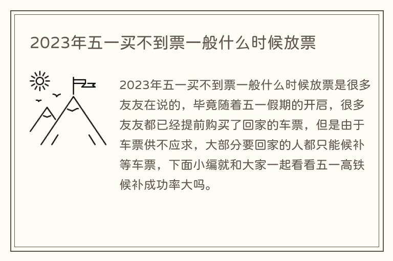2023年五一买不到票一般什么时候放票是很多友友在说的,毕竟随着五一假期的开启,很多友友都已经提前购买了回家的车票,但是由于车票供不应求,大部分要回家的人都只能候补等车票,下面小编就和大家一起看看五一高铁候补成功率大吗。