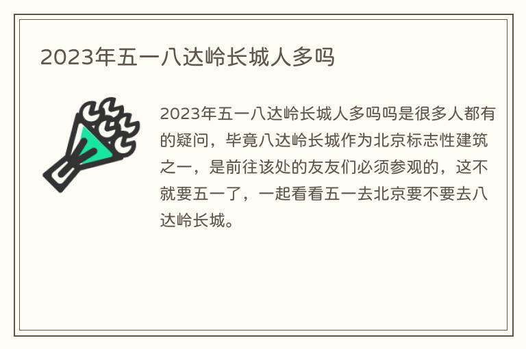2023年五一八达岭长城人多吗吗是很多人都有的疑问,毕竟八达岭长城作为北京标志性建筑之一,是前往该处的友友们必须参观的,这不就要五一了,一起看看五一去北京要不要去八达岭长城。