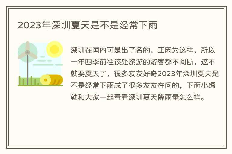 深圳在国内可是出了名的,正因为这样,所以一年四季前往该处旅游的游客都不间断,这不就要夏天了,很多友友好奇2023年深圳夏天是不是经常下雨成了很多友友在问的,下面小编就和大家一起看看深圳夏天降雨量怎么样。