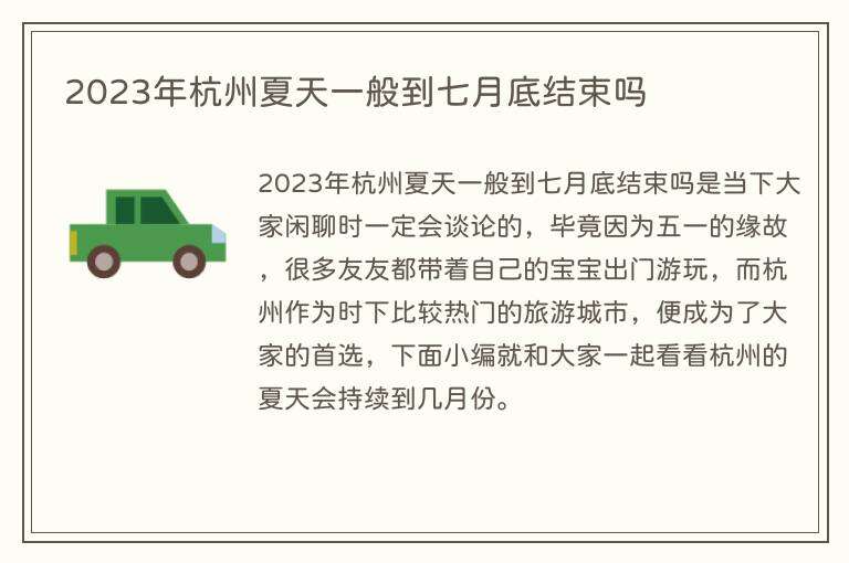 2023年杭州夏天一般到七月底结束吗是当下大家闲聊时一定会谈论的,毕竟因为五一的缘故,很多友友都带着自己的宝宝出门游玩,而杭州作为时下比较热门的旅游城市,便成为了大家的首选,下面小编就和大家一起看看杭州的夏天会持续到几月份。