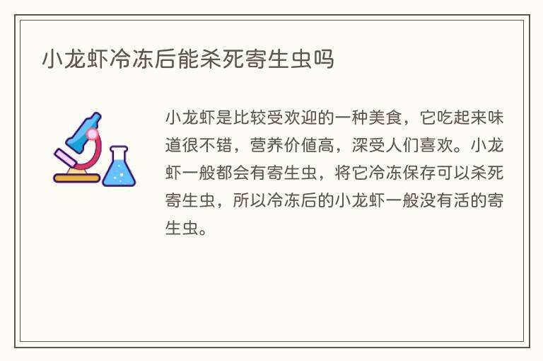 小龙虾是比较受欢迎的一种美食,它吃起来味道很不错,营养价值高,深受人们喜欢。小龙虾一般都会有寄生虫,将它冷冻保存可以杀死寄生虫,所以冷冻后的小龙虾一般没有活的寄生虫。