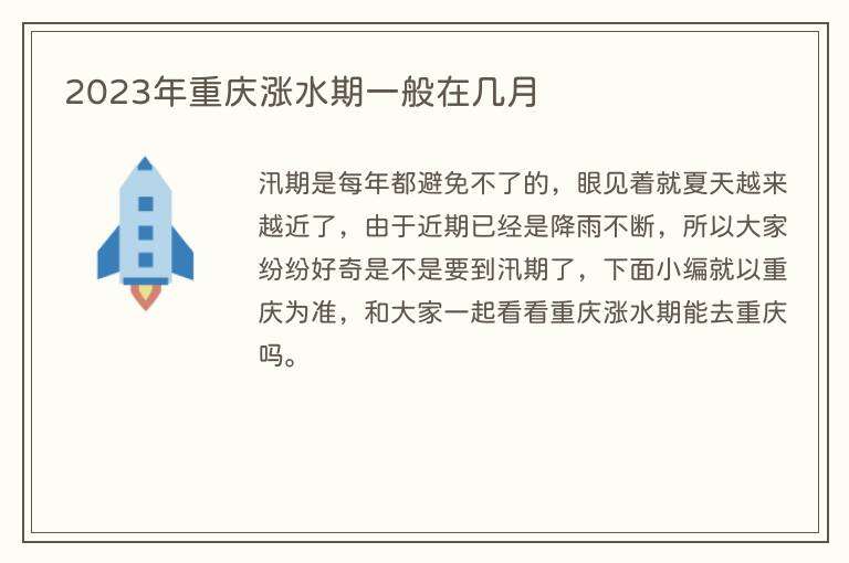 汛期是每年都避免不了的,眼见着就夏天越来越近了,由于近期已经是降雨不断,所以大家纷纷好奇是不是要到汛期了,下面小编就以重庆为准,和大家一起看看重庆涨水期能去重庆吗。