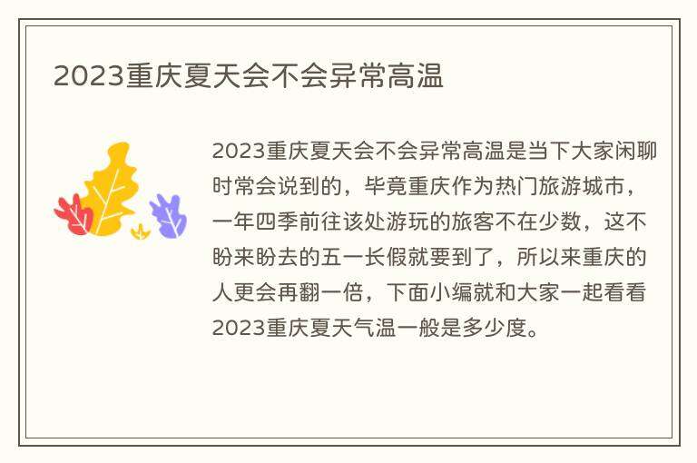 2023重庆夏天会不会异常高温