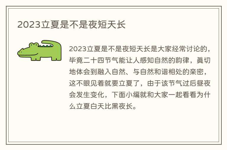 2023立夏是不是夜短天长是大家经常讨论的,毕竟二十四节气能让人感知自然的韵律,真切地体会到融入自然、与自然和谐相处的亲密,这不眼见着就要立夏了,由于该节气过后昼夜会发生变化,下面小编就和大家一起看看为什么立夏白天比黑夜长。