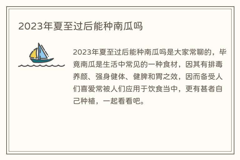 2023年夏至过后能种南瓜吗是大家常聊的,毕竟南瓜是生活中常见的一种食材,因其有排毒养颜、强身健体、健脾和胃之效,因而备受人们喜爱常被人们应用于饮食当中,更有甚者自己种植,一起看看吧。