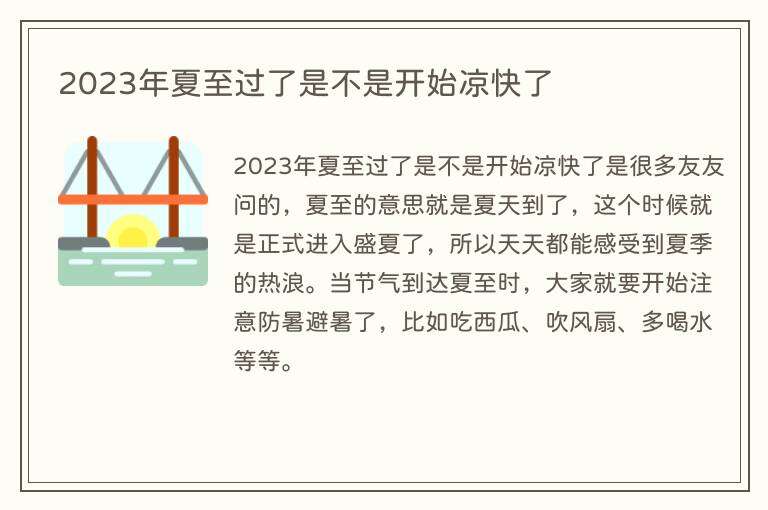 2023年夏至过了是不是开始凉快了