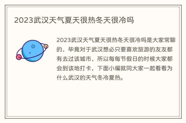 2023武汉天气夏天很热冬天很冷吗