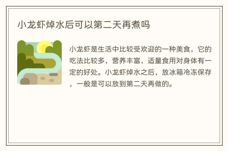 小龙虾是生活中比较受欢迎的一种美食,它的吃法比较多,营养丰富,适量食用对身体有一定的好处。小龙虾焯水之后,放冰箱冷冻保存,一般是可以放到第二天再做的。