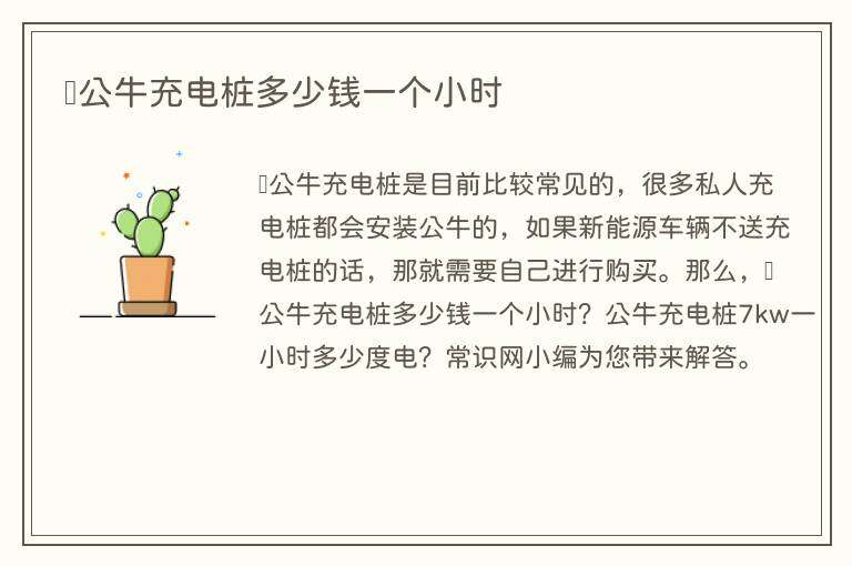 公牛充电桩是目前比较常见的,很多私人充电桩都会安装公牛的,如果新能源车辆不送充电桩的话,那就需要自己进行购买。那么,公牛充电桩多少钱一个小时?公牛充电桩7kw一小时多少度电?常识网小编为您带来解答。