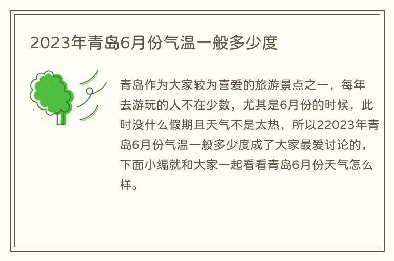 青岛作为大家较为喜爱的旅游景点之一,每年去游玩的人不在少数,尤其是6月份的时候,此时没什么假期且天气不是太热,所以22023年青岛6月份气温一般多少度成了大家最爱讨论的,下面小编就和大家一起看看青岛6月份天气怎么样。