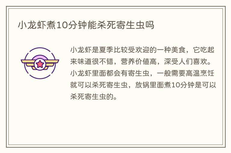 小龙虾是夏季比较受欢迎的一种美食,它吃起来味道很不错,营养价值高,深受人们喜欢。小龙虾里面都会有寄生虫,一般需要高温烹饪就可以杀死寄生虫,放锅里面煮10分钟是可以杀死寄生虫的。