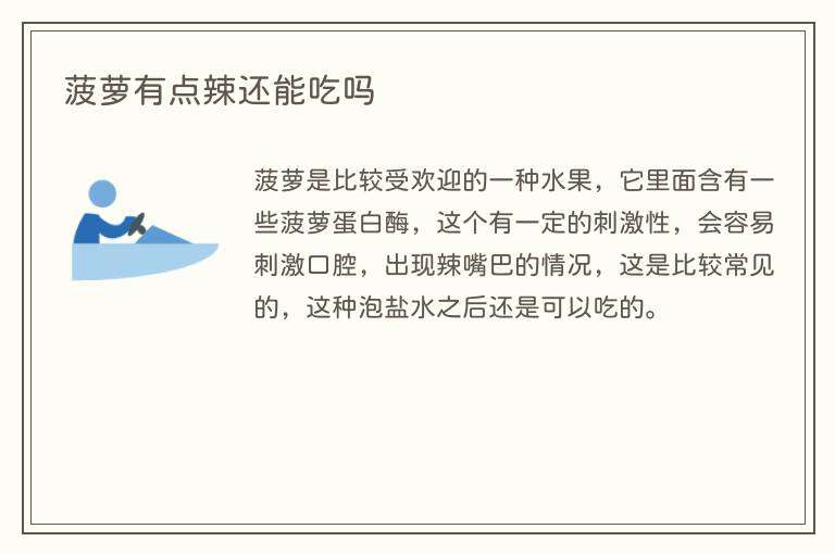 菠萝有点辣主要是因为里面的菠萝朊酶引起的,直接吃会容易刺激口腔,就会产生辣辣的感觉,这是比较常见的一种现象,并不是菠萝变质导致的,一般还是可以吃的,不过最好将菠萝泡盐水之后再吃。
