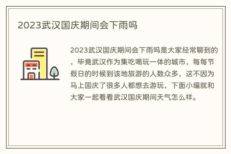 2023武汉国庆期间会下雨吗是大家经常聊到的,毕竟武汉作为集吃喝玩一体的城市,每每节假日的时候到该地旅游的人数众多,这不因为马上国庆了很多人都想去游玩,下面小编就和大家一起看看武汉国庆期间天气怎么样。