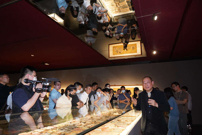 策展人陈琦在致辞中介绍到,本次展览不是对荣宝斋350周年历史的一次简单呈现,而是把荣宝斋的传统技艺放在千年的历史上去关注,同时也从学术上梳理了从上世纪50年代到今天中国现当代水印版画的发展。通过这次展览的完整呈现,我们能够看到中国雕版水印木刻艺术的伟大传统和辉煌。尤其是本次展览首次将《韩熙载夜宴图》1667块原版悉数展出,向世人昭示了中国的大国工匠精神。
