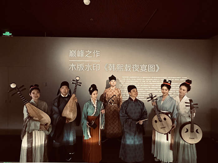 荣宝斋有限公司党委书记、执行董事赵东在媒体采访中表示,《韩熙载夜宴图》1667块原版首次展出,整个画面和原版是一一对应的,这是一种创新的展览方式,非常有意义。本次展览首次同时展出了过去的印制作品,以原貌体现木版水印的发展历程,让观众了解过去的历史。展览场景还具有很强的科技氛围,具有创造性和创新能力,值得大众的关注与观赏。
