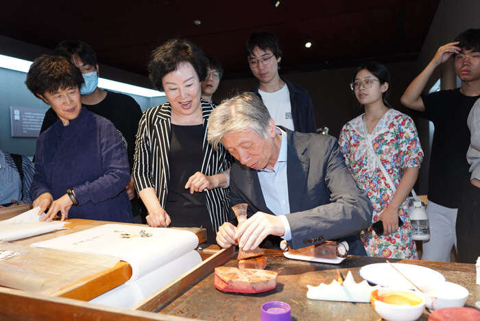 中国美术家协会主席、中央美术学院院长范迪安体验木版水印技艺