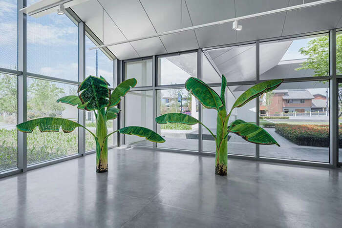 离开黄浦江畔的工业遗址,沿着上海纵横交错的河道水系一路溯源而上,余德耀美术馆在委蛇曲折的蟠龙古镇水乡边重新安家。依河流、稻田、池塘、竹林这一片四方天地而建,江南传统民居的“山墙”和“双坡顶”结构被解构重组,经由两组互承式钢桁架结构,交织承托起美术馆内外空间,将自然与人工、传统与现代融为一体。