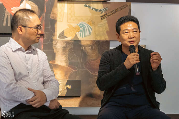 开幕式上,中央美术学院美术馆馆长、教授、博士生导师张子康先生专程到场祝贺并发表致辞,他表示:“多年来,艺术家张见始终在创作实践与试验中不断推进,同时他也是一位特别优秀的老师,在与同学生们的交流中,张见多是在思想观念层面加以引导,这一点从现场展出的众多精彩作品中足以窥见。作品《当<夜巡>来到中国》借中国工笔画和传统壁画的综合呈现,以及展陈上的链接叠加,令我们看到古典主义与新工笔绘画的碰撞,这一后现代的表达方式,更为当代艺术构建出文化层面的新的认知与思考。”