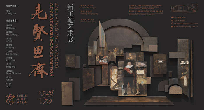 2023年5月27日下午,展览“见贤思齐:新工笔艺术展”在大千画廊正式开幕。展览由美术学博士、中国美术馆研究馆员魏祥奇担纲策展,展出包括中国艺术研究院工笔画院院长张见和他工作室的青年艺术家叶紫、孟哲、刘志蕾、毕晓慧、王晴园、金金、栗玉莹、杨怡、刘小锋、胡箫桐共同创作的工笔绘画装置《当<夜巡>来到中国》等在内的作品20余件。