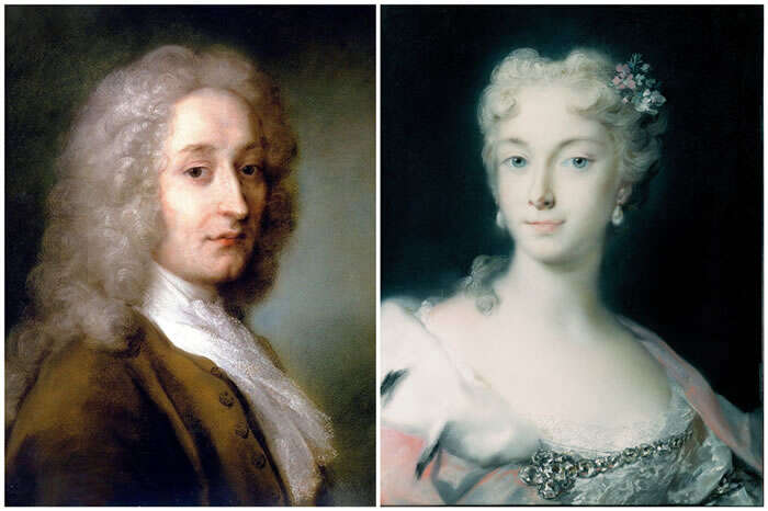 罗萨尔巴•卡列拉,粉彩肖像,左图*:法国洛可可时代代表画家让-安托万·华托(Antoine Watteau,1684-1721)肖像,1721,意大利特雷维索 Luigi BailoMuseum 馆藏;右图*:“玛丽娅•特蕾莎(Maria Theresia,1717-1780)肖像”*,1730,德国德累斯顿历代大师画廊(GemäldegalerieAlte Meister)