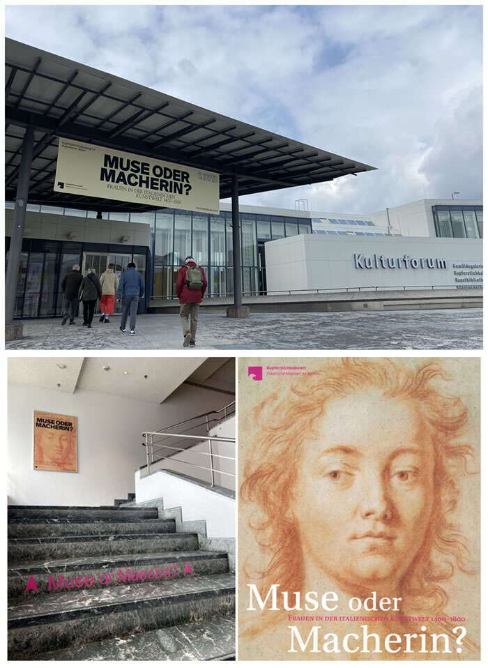 “缪斯还是大师?意大利艺术界的女性,1400-1800”特展海报及展览现场*。展馆:德国柏林国家博物馆之版画素描博物馆 (Kupferstichkabinett),展览时间:2023年3月8日-6月4日