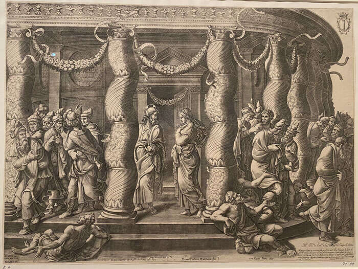 “Christus und die Ehebrecherin”,戴安娜·曼图安娜,翻刻自朱利奥·罗马诺(Giulio Romano,1499-1546),1575