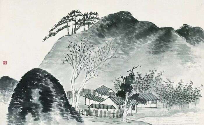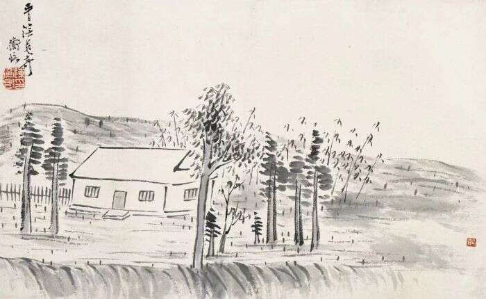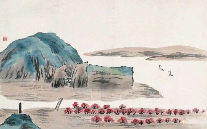 借山图之十五 齐白石 30cm×48cm 纸本设色 1910年北京画院藏