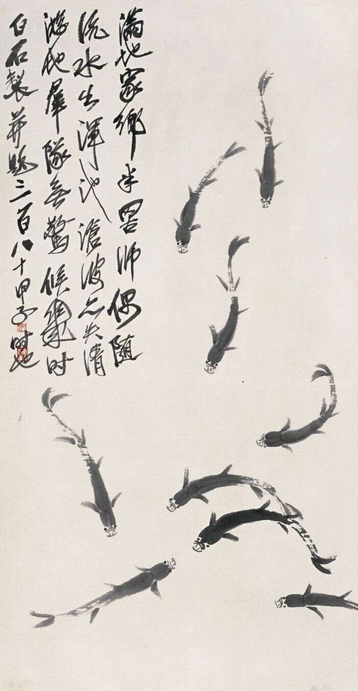 小鱼图 齐白石 82×42.5cm 纸本墨笔 1925年 北京画院藏
