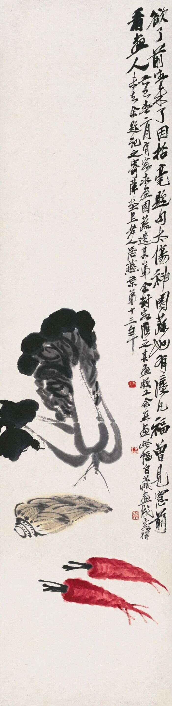 白菜胡萝卜 齐白石 138×34cm 纸本设色 1929年 北京画院藏