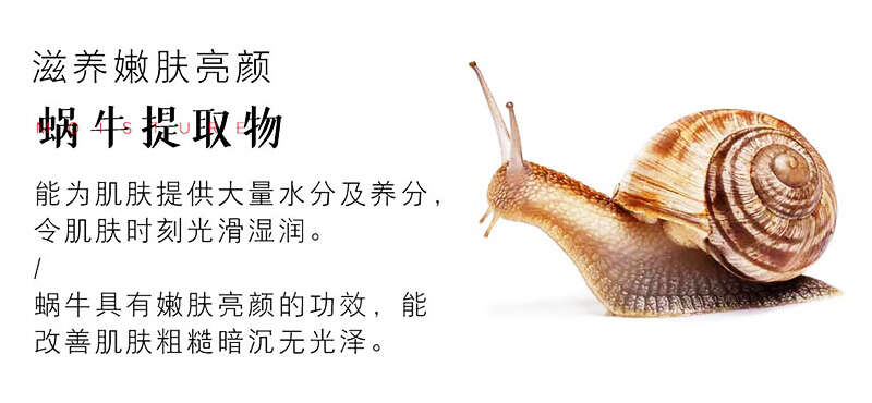 蜗牛粘液提取物是指蜗牛爬行过程中分泌的黏液,从中过滤萃取的精华物,我们就称之为『蜗牛黏液提取物』。早在古希腊时期,医学之父「Hippocrates」就已将蜗牛用于医疗方面,他混合牛奶与碾碎的蜗牛治疗皮肤伤疤,Hippocrates记录着蜗牛黏液的功能有保湿、消红肿及消炎镇痛,持续使用皮肤表面变得光滑透亮。