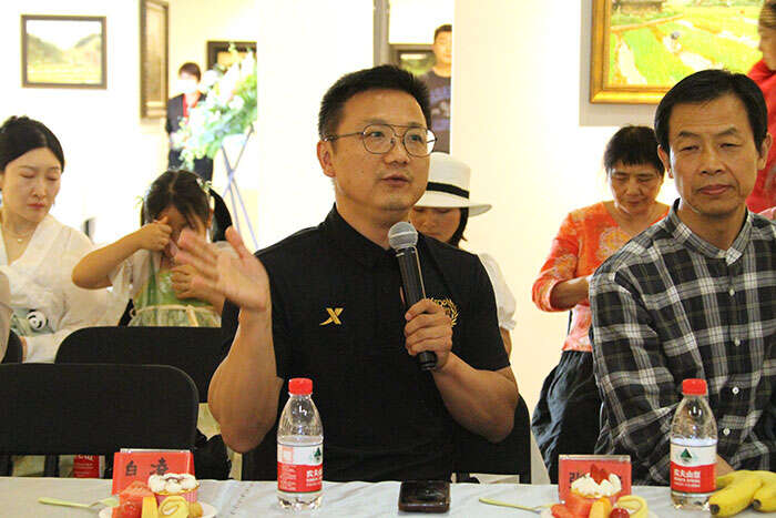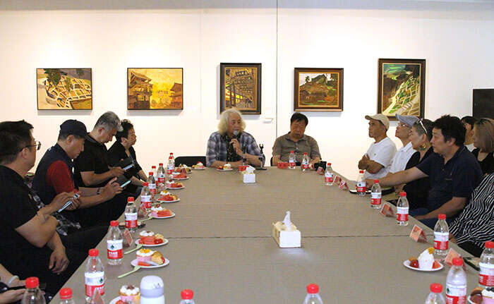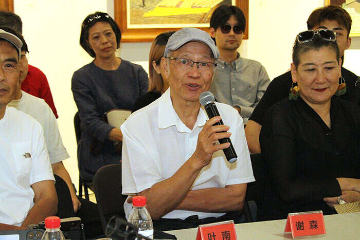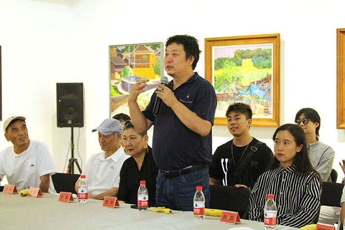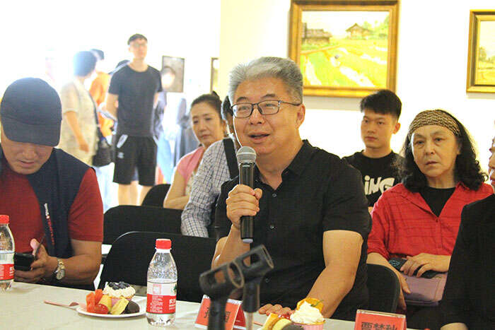 展览学术主持、北京师范大学艺术与传媒学院美术与设计系教授古棕主持研讨会(摄影 冯世光)