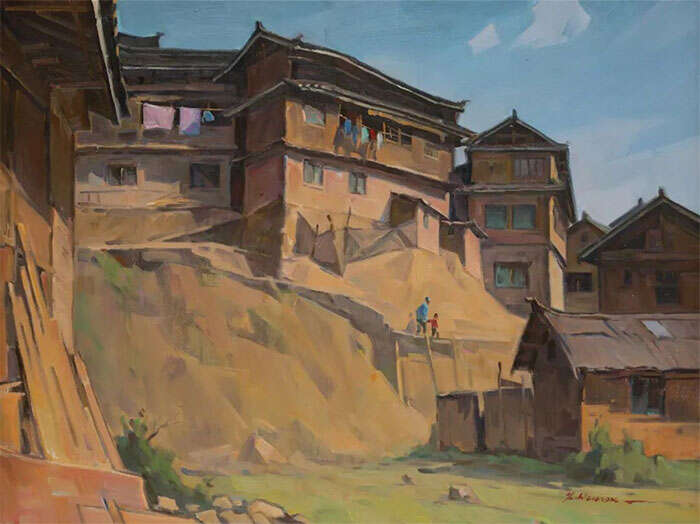 黄远鹏,《侗寨人家》,60x80cm,2023年