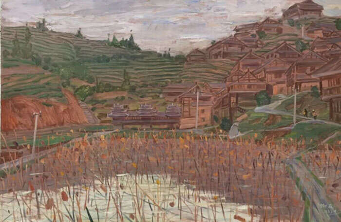 谢森,《侗寨》,80×120cm,2023年